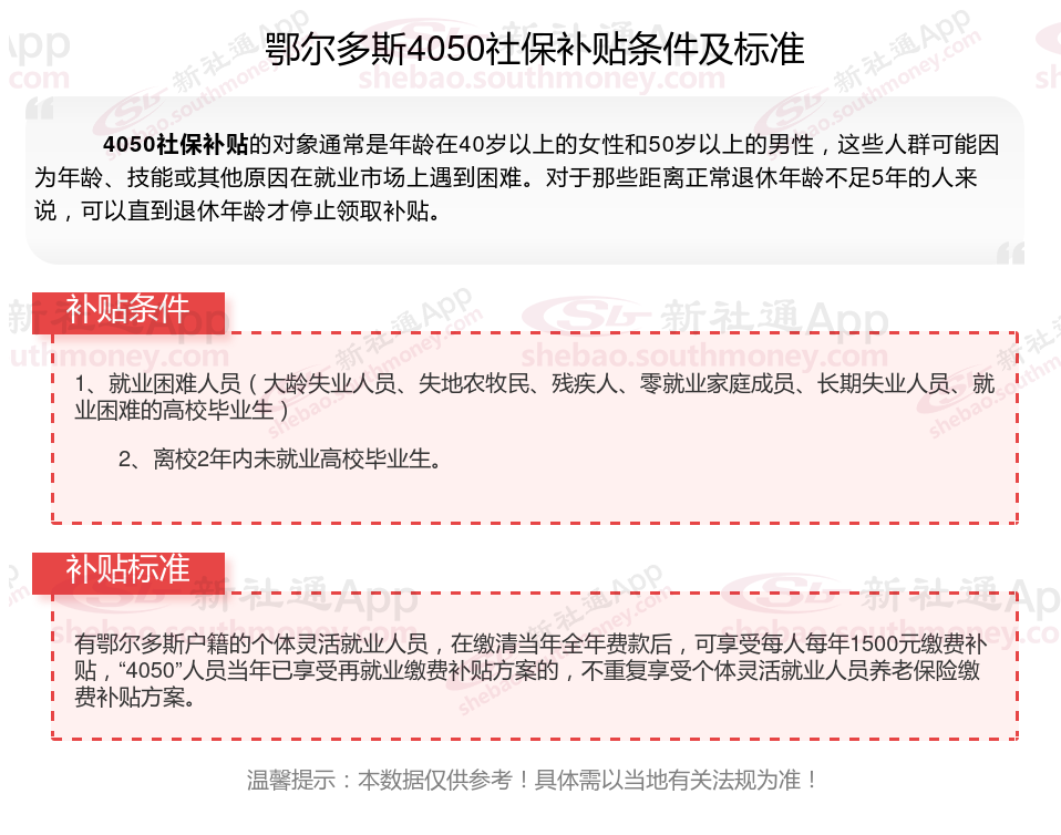 一、鄂尔多斯4050社保补贴标准及条件2025年最新消息