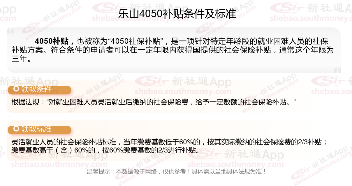 一、2023-2024年乐山灵活就业4050社保补贴标准和条件是什么