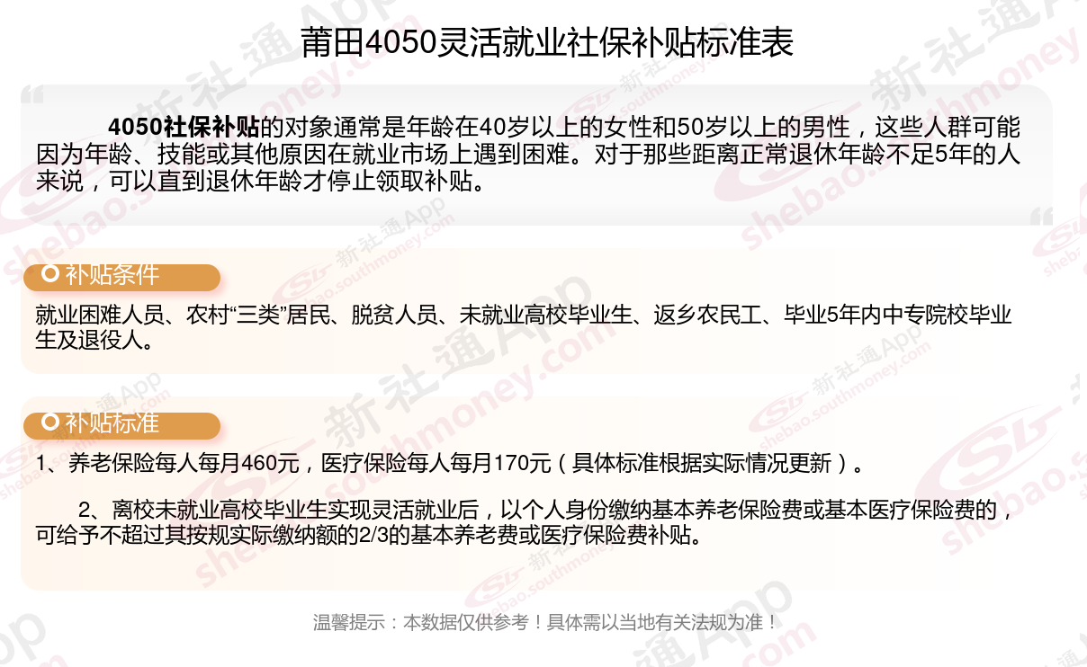 二、2025年莆田4050社保补贴标准(莆田4050灵活就业人员补贴标准是多少钱?莆田2025年4050补贴新规能领多少钱?)