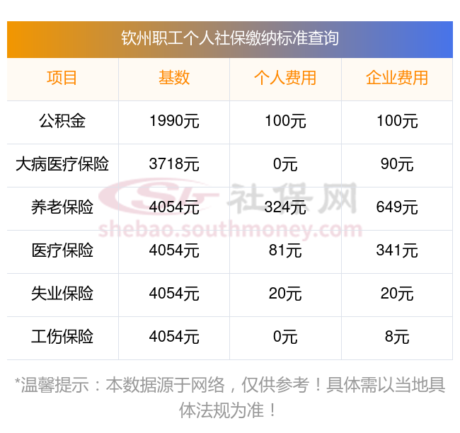 2025社保交多少钱?下表是2025年钦州社保费用明细参考,新社通app-社保缴费查询工具提供的最新数据如下: