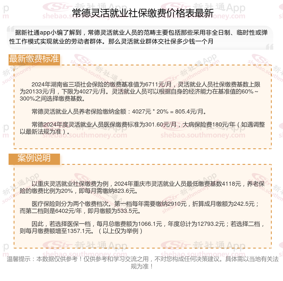 以上就是带来常德灵活就业社保缴费标准相关知识,内容供参考,希望对你有帮助,欢迎关注/下载新社通APP解锁更多社保专业资讯。