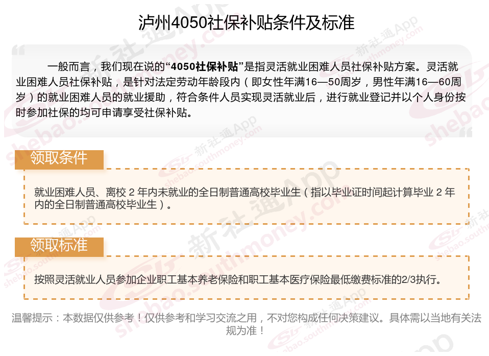二、泸州4050社保补贴标准及条件4050社保补贴,最新如下