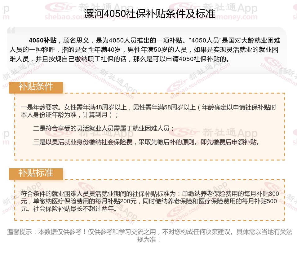 二、漯河4050社保补贴标准及条件2025年最新消息