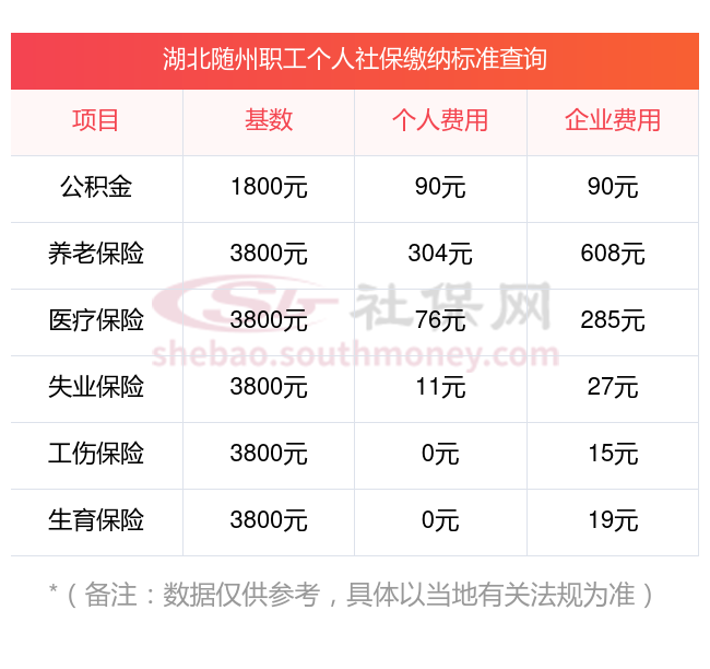 湖北随州社保一个月交多少钱,个人可以缴纳社保吗??下面和新社-app一起来看看湖北随州最低标准社保费用明细参考,新社通app-社保缴费查询工具提供的最新数据如下: