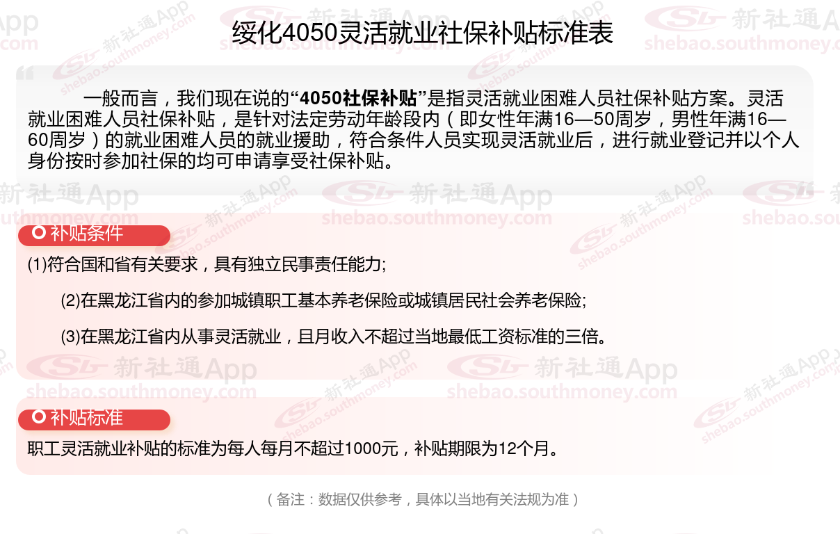 一、2025年绥化4050社保补贴标准是怎么样的?绥化4050一年可拿多少钱?