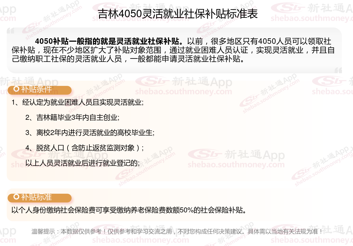 二、2025年吉林灵活就业4050社保补贴标准及条件是什么?来了解一下