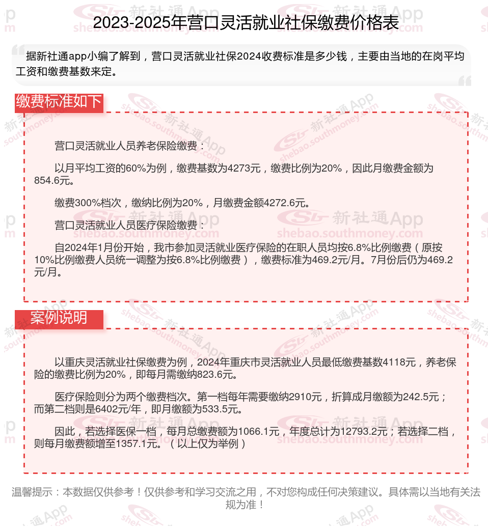 据新社通app数据显示,营口企业灵活就业养老保险的缴费基数为:4273元。