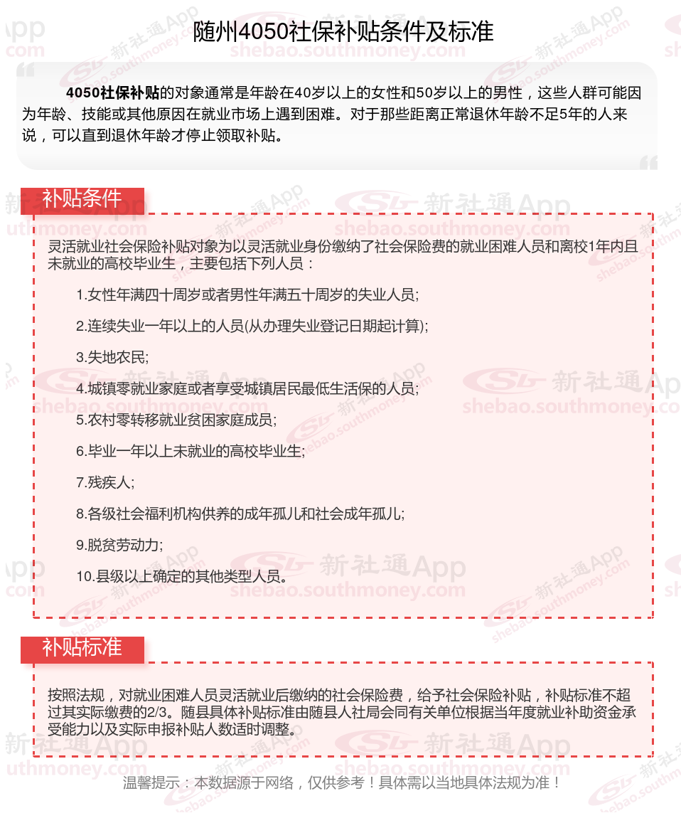 2025随州灵活就业4050社保补贴是一项面向特定年龄段的就业困难人群的社会保险补贴。