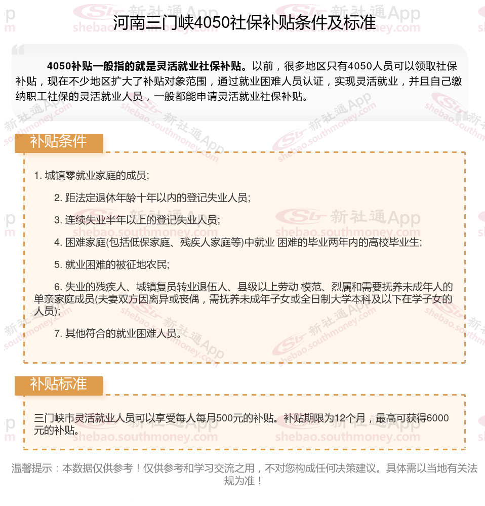 以上就是河南三门峡4050灵活就业社保补贴的相关内容,欢迎关注新社通/下载新社通APP了解更多五险一金专业资讯。