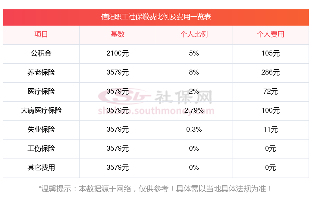 2025年信阳社保缴费价格,2025年信阳社保缴费多少钱?下表是2025年信阳社保费用明细参考,新社通app-社保缴费查询工具提供的最新数据如下: