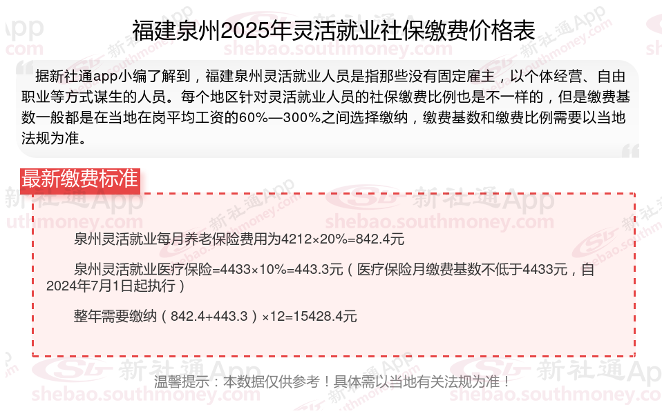 一、2025年福建泉州灵活就业社保缴费标准公布啦 福建泉州灵活就业社保多少钱一个月?