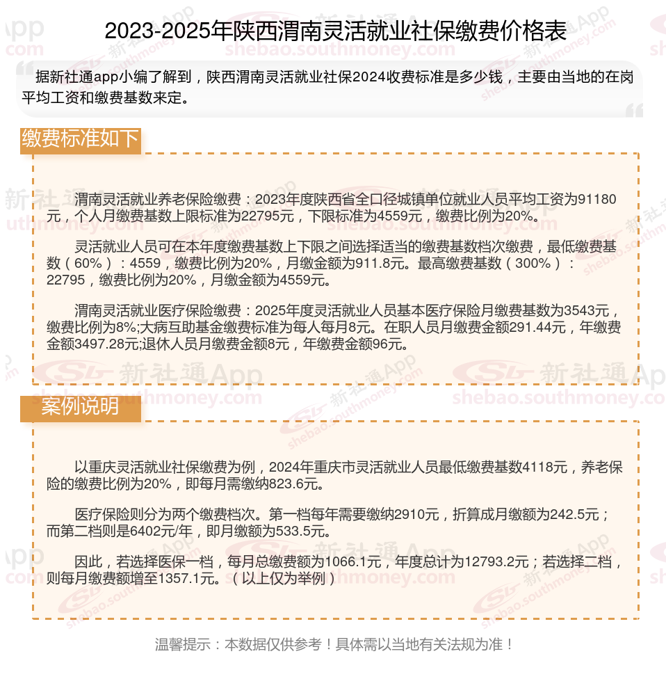 以上就是带来陕西渭南灵活就业社保缴费标准相关知识,内容供参考,希望对你有帮助,欢迎关注/下载新社通APP解锁更多社保专业资讯。