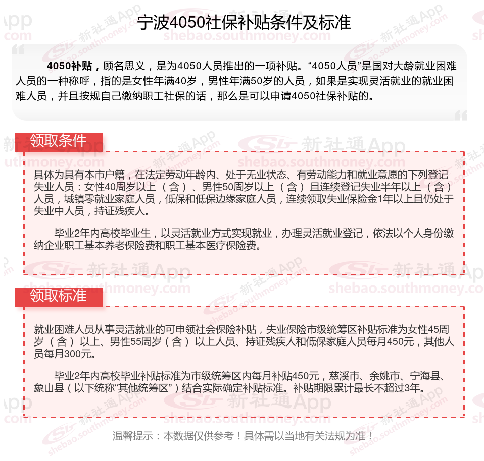 2025宁波4050补贴主要针对的是年龄在40岁以上的女性和50岁以上的男性,这些人群通常因为年龄较大而面临就业困难。