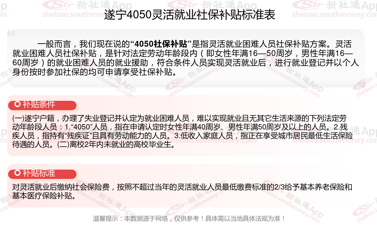 二、2025年遂宁4050社保补贴标准及条件是什么?