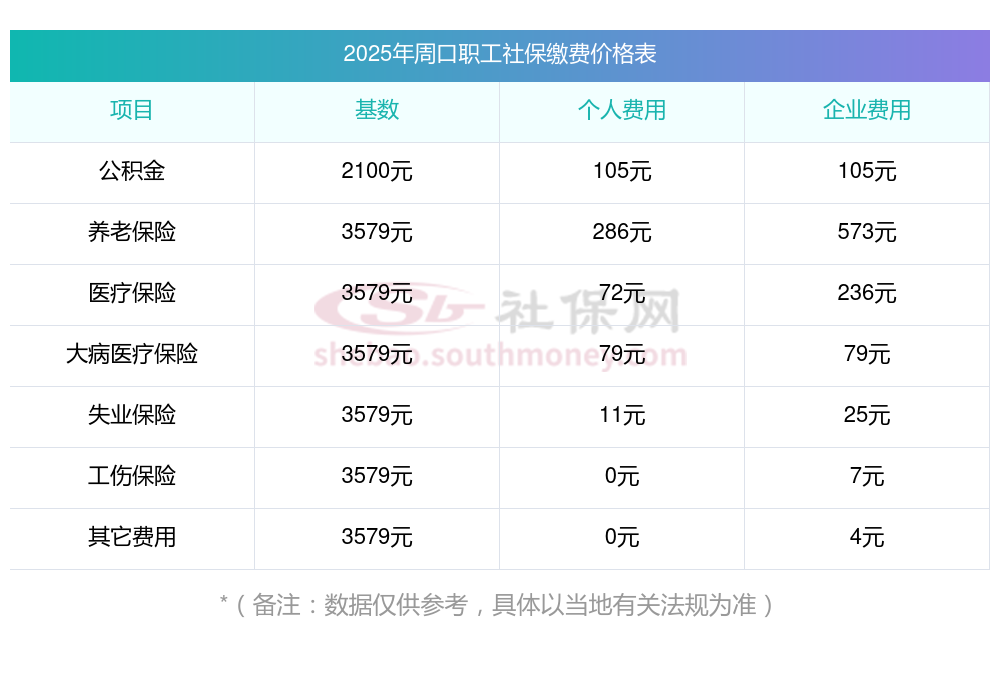 2025年周口社保缴费价格表最新消息?周口社保交多少钱一个月?下表是2024-2025年周口社保费用明细参考,新社通app-社保缴费查询工具提供的最新数据如下: