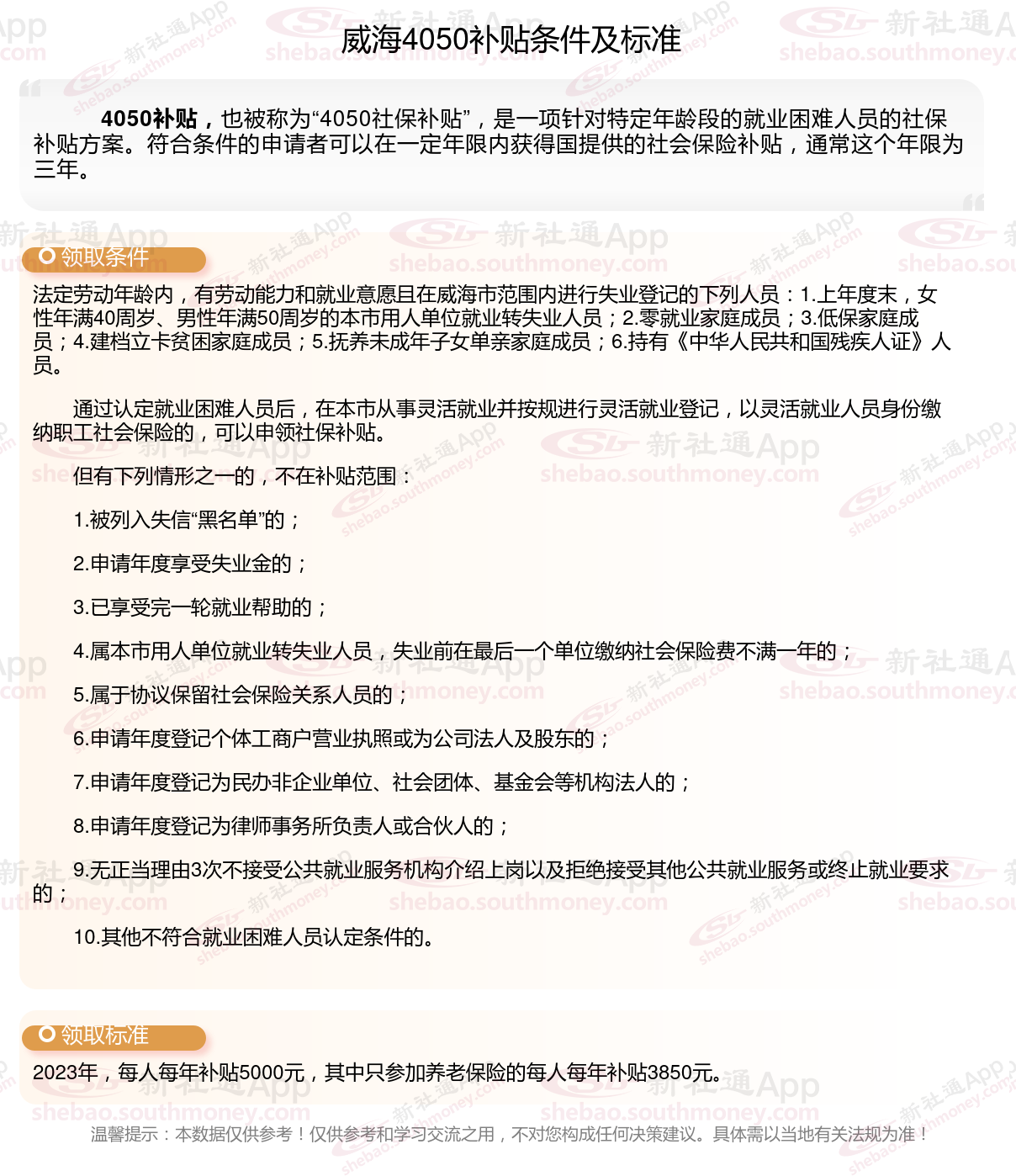 二、2025年威海4050社保补贴标准及条件