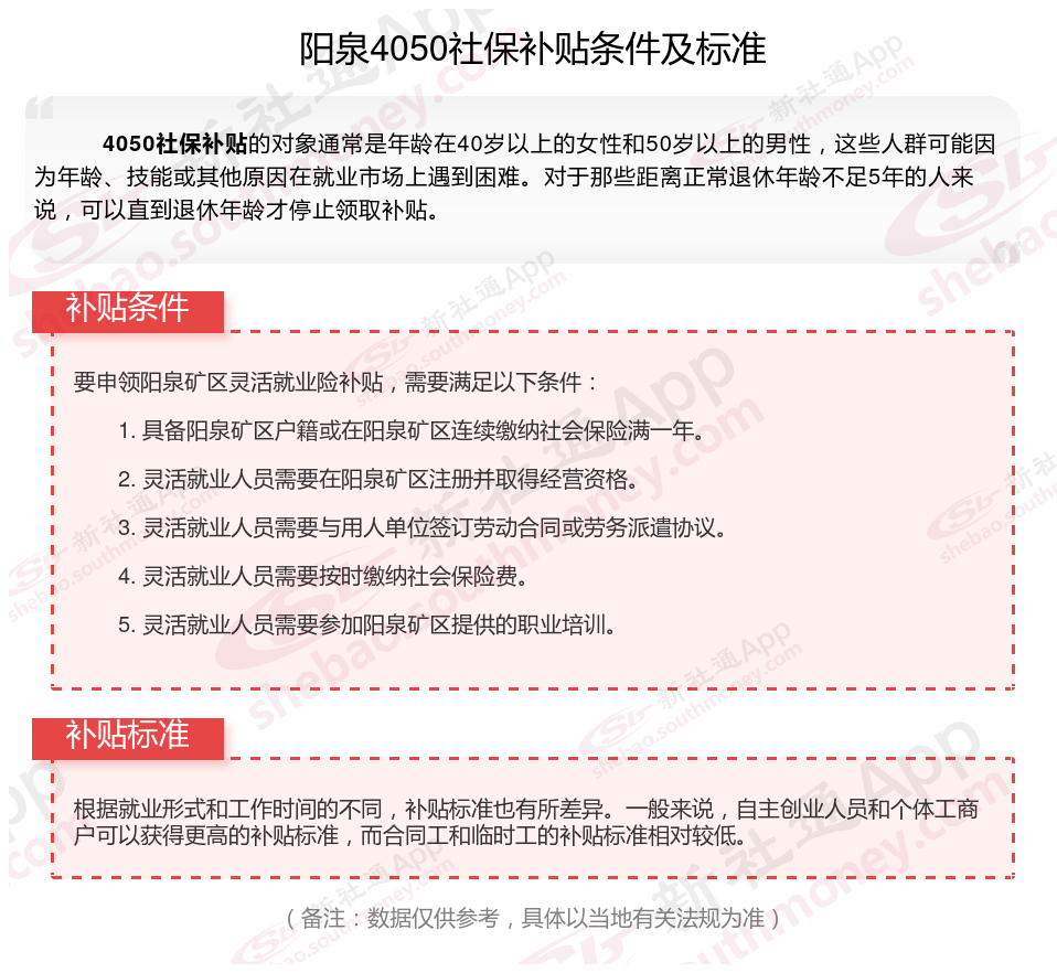 二、阳泉4050社保补贴标准及条件(2025年最新)