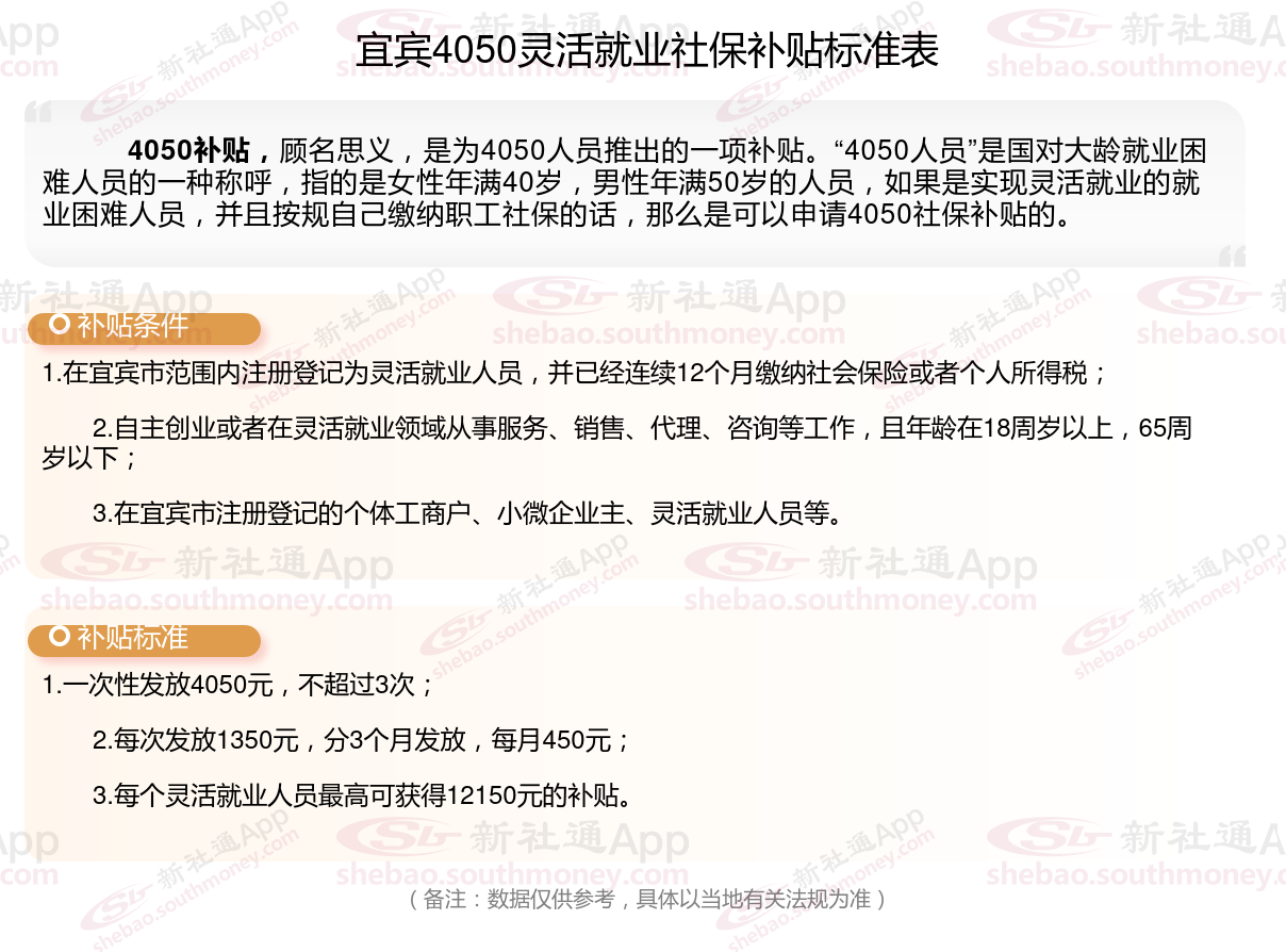 二、宜宾4050社保补贴标准及条件2025年,最新如下