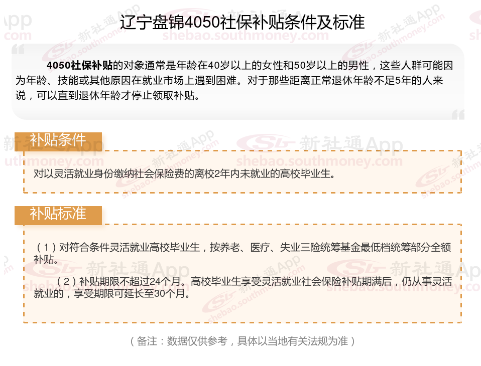 一、辽宁盘锦灵活就业4050社保补贴标准和条件是什么?