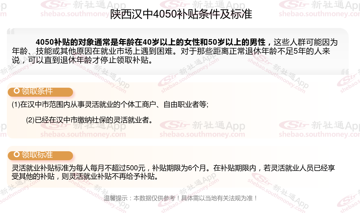 二、2025年陕西汉中4050社保补贴标准,最新领取条件来了