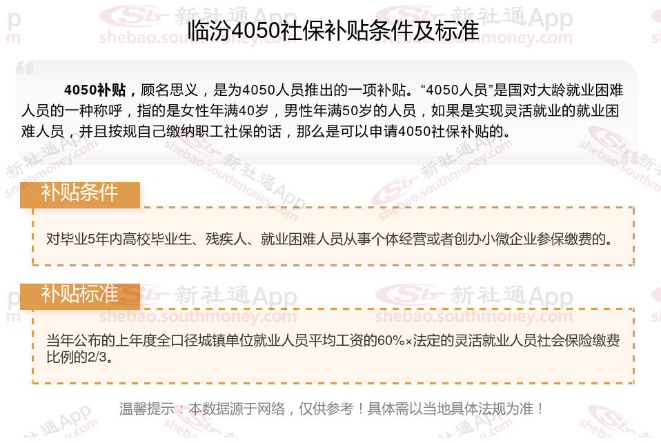 2025临汾灵活就业4050社保补贴是一项面向特定年龄段的就业困难人群的社会保险补贴。