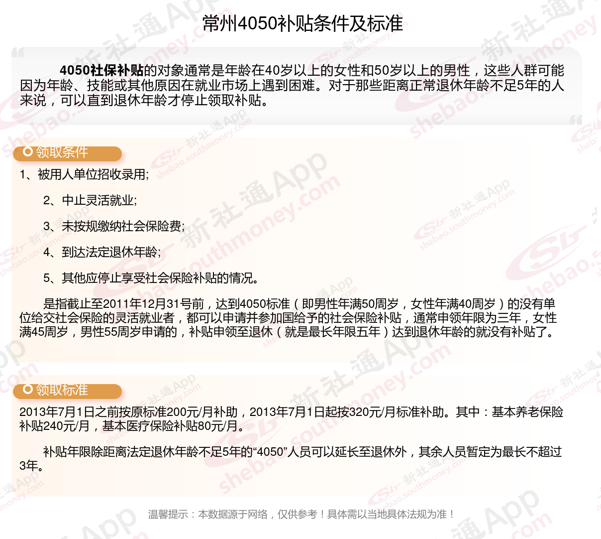 今天聊一下4050补贴的相关内容。4050补贴听起来像是一个针对特定年龄人群的社保补贴。比如女性需年满40周岁,男性需年满50周岁(以申请当年12月31日为截止日期)。那么常州4050灵活就业困难人员社保补贴多少钱?常州4050社保补贴可以申请吗?接下来随新社通APP小编具体了解一下4050社保补贴内容。