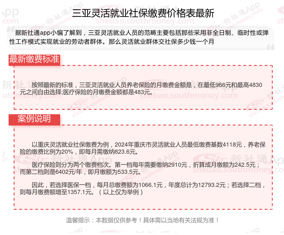 据新社通app数据显示,三亚灵活就业养老缴费基数明细如下: