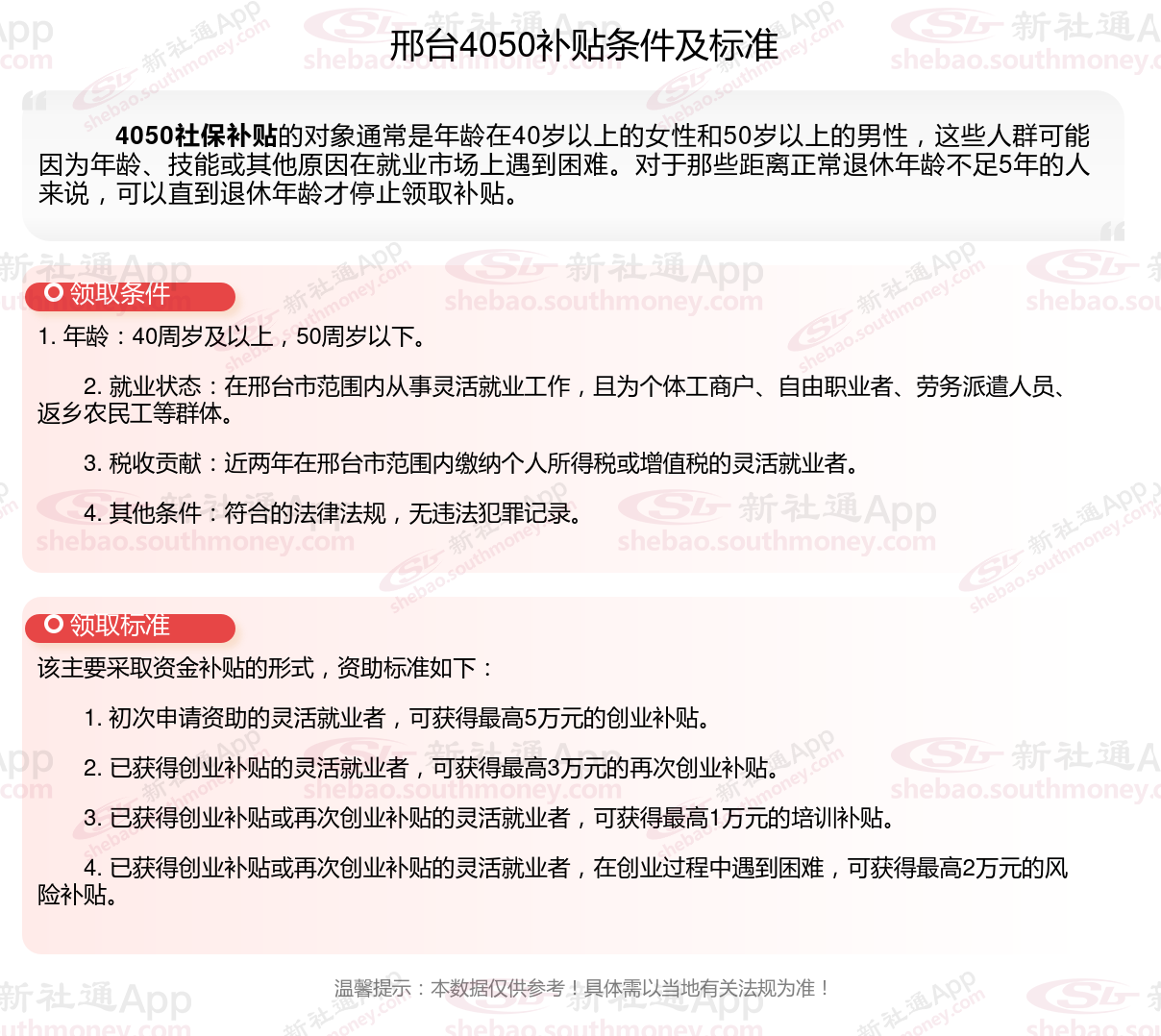 以上就是邢台4050灵活就业困难人员社保补贴的相关内容,欢迎关注新社通/下载新社通APP了解更多五险一金专业资讯。