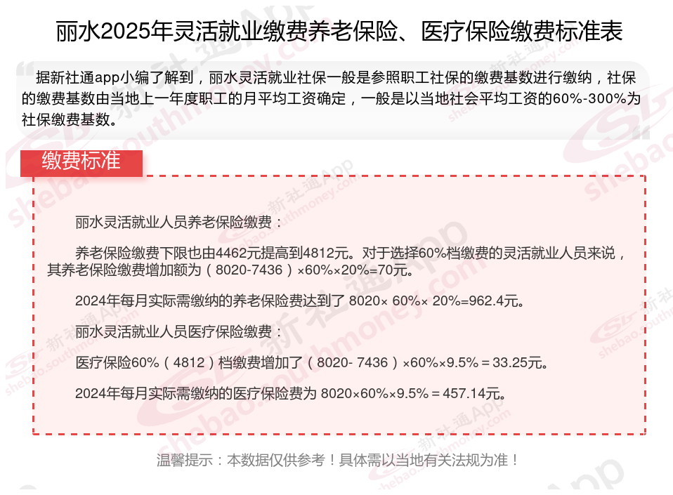 以上就是新社通小编带来丽水灵活就业社保缴费知识,内容供参考,希望对你有帮助,欢迎关注/下载新社通APP解锁更多社保专业资讯。
