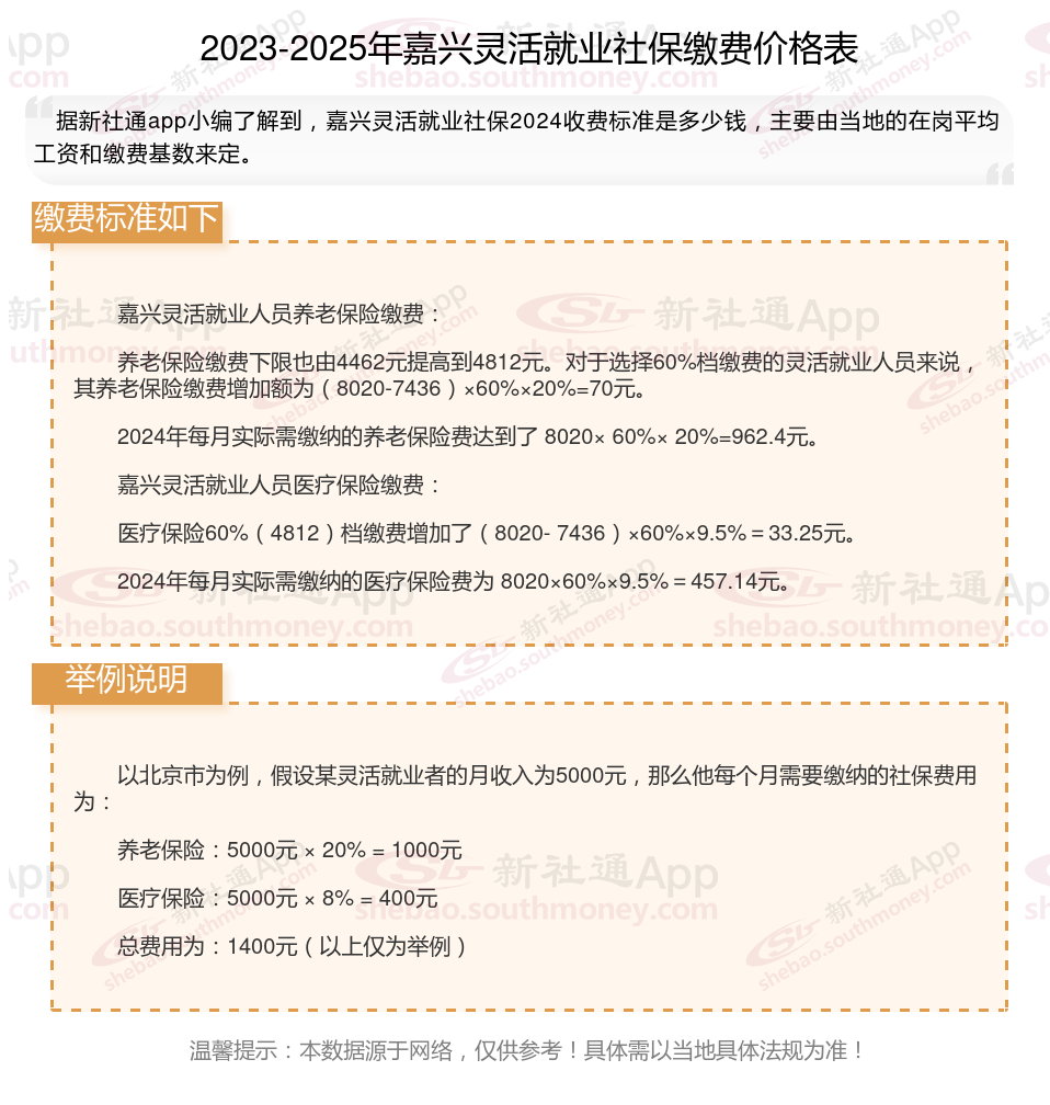 据新社通app数据显示,嘉兴灵活就业养老保险最低缴费基数为:4462元;个人的缴费比例分别为:20%;