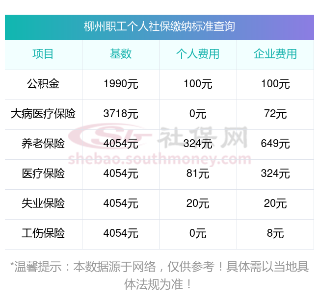 2025年柳州社保缴费价格,2025年柳州社保缴费多少钱?下表是2025年柳州社保费用明细参考,新社通app-社保缴费查询工具提供的最新数据如下: