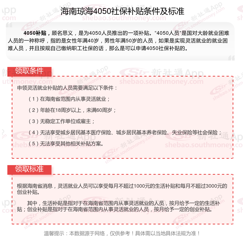 一、海南琼海4050社保补贴标准及条件2025年最新消息