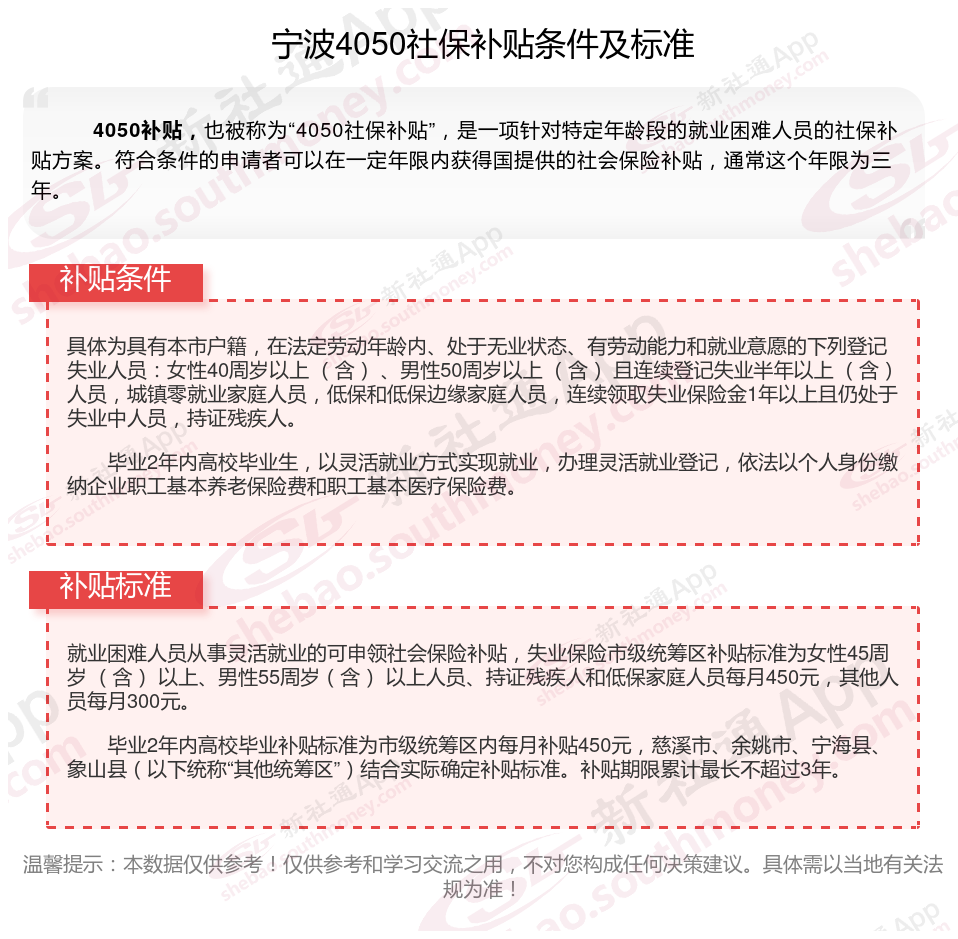 二、2025年宁波4050社保补贴多少钱?4050社保补贴领取条件什么?