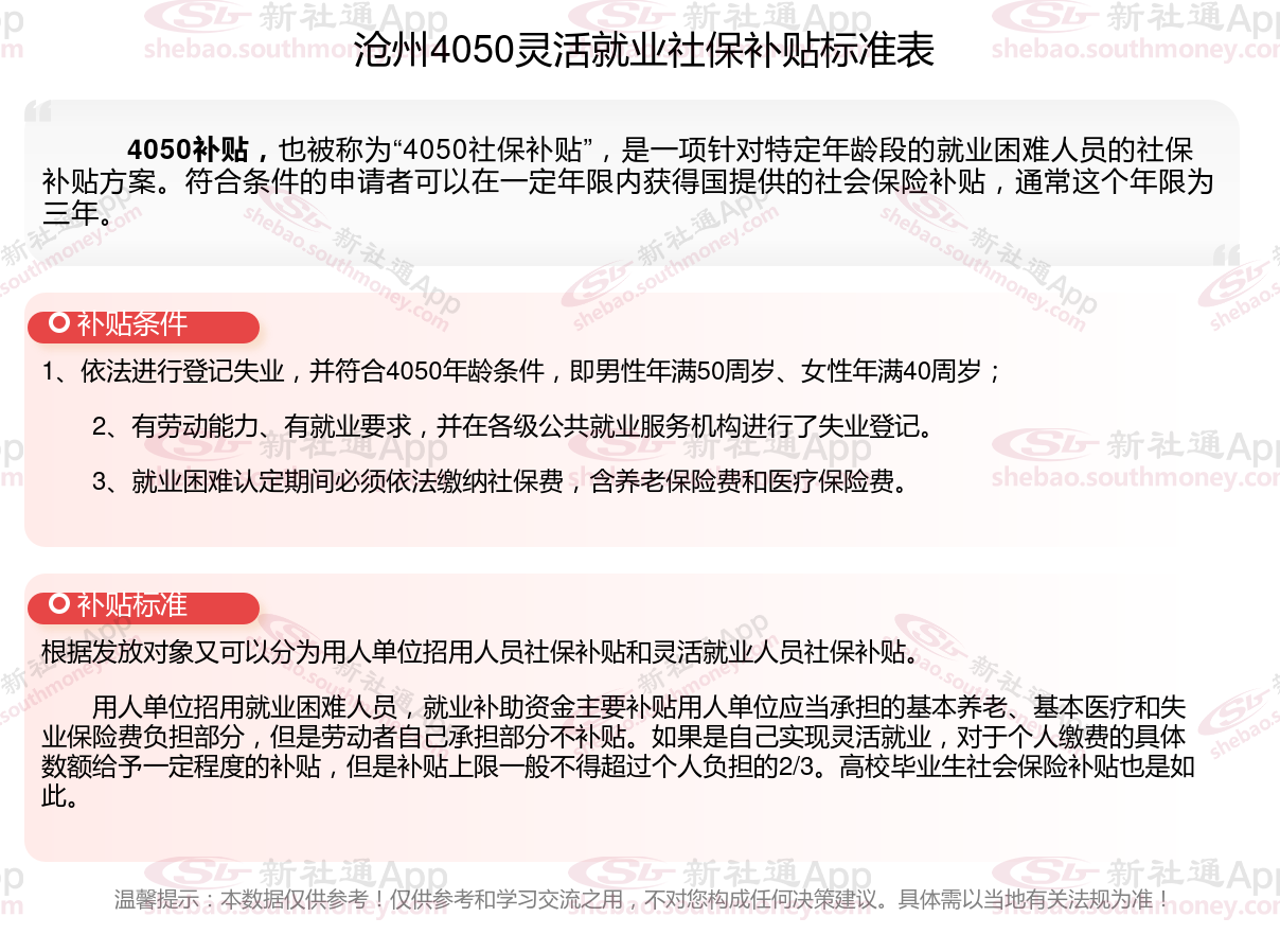 以上就是沧州4050灵活就业社保补贴的相关内容,欢迎关注新社通/下载新社通APP了解更多五险一金专业资讯。