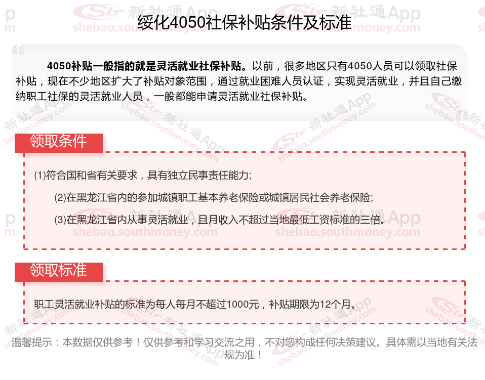 一、绥化灵活就业人员领4050补贴能领到多少钱,补贴补多少呢?(绥化4050社保补贴标准2025)