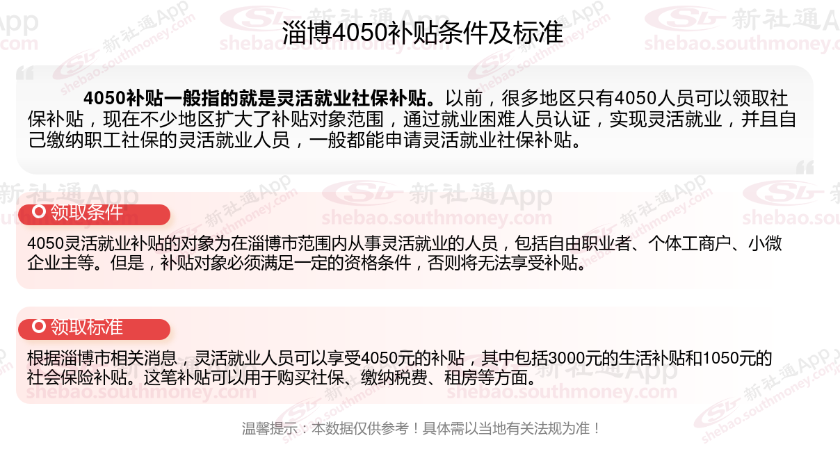一、2025年淄博灵活就业4050社保补贴标准及条件是什么
