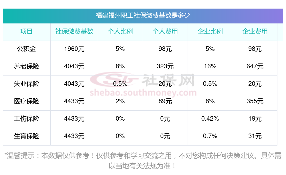 2025社保交多少钱?下表是2025年福建福州社保费用明细参考,新社通app-社保缴费查询工具提供的最新数据如下: