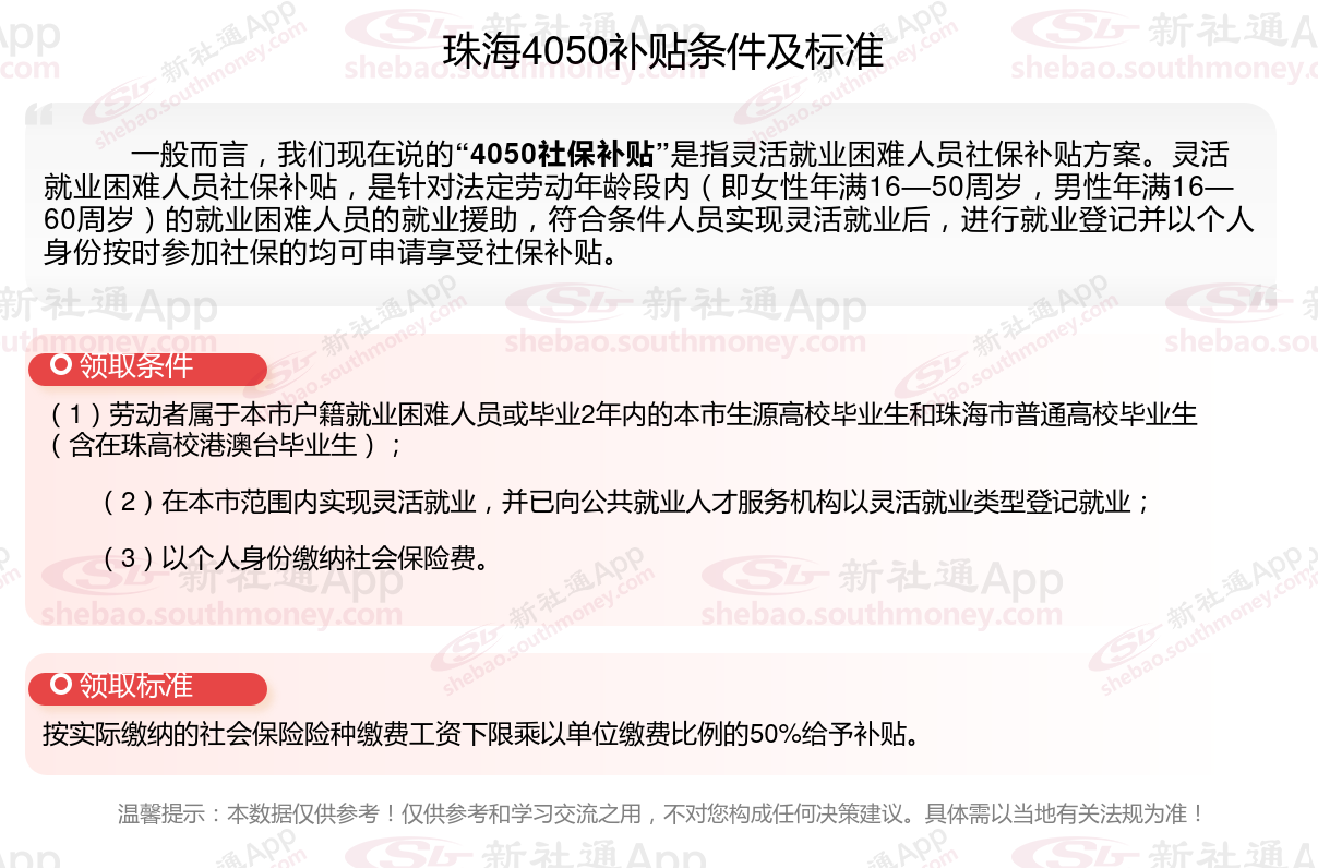 二、2025年珠海4050社保补贴标准,最新领取条件来了