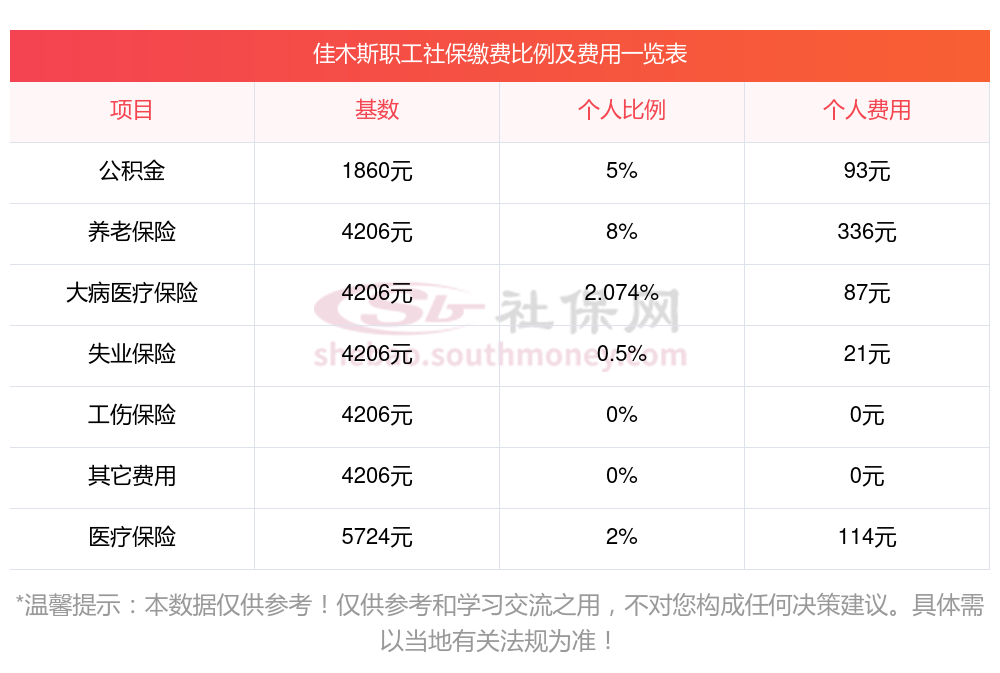 2025年佳木斯社保缴费标准是多少,农村社保要交多少年才不交 下表是2025年佳木斯社保费用明细参考,新社通app-社保缴费查询工具提供的最新数据如下: