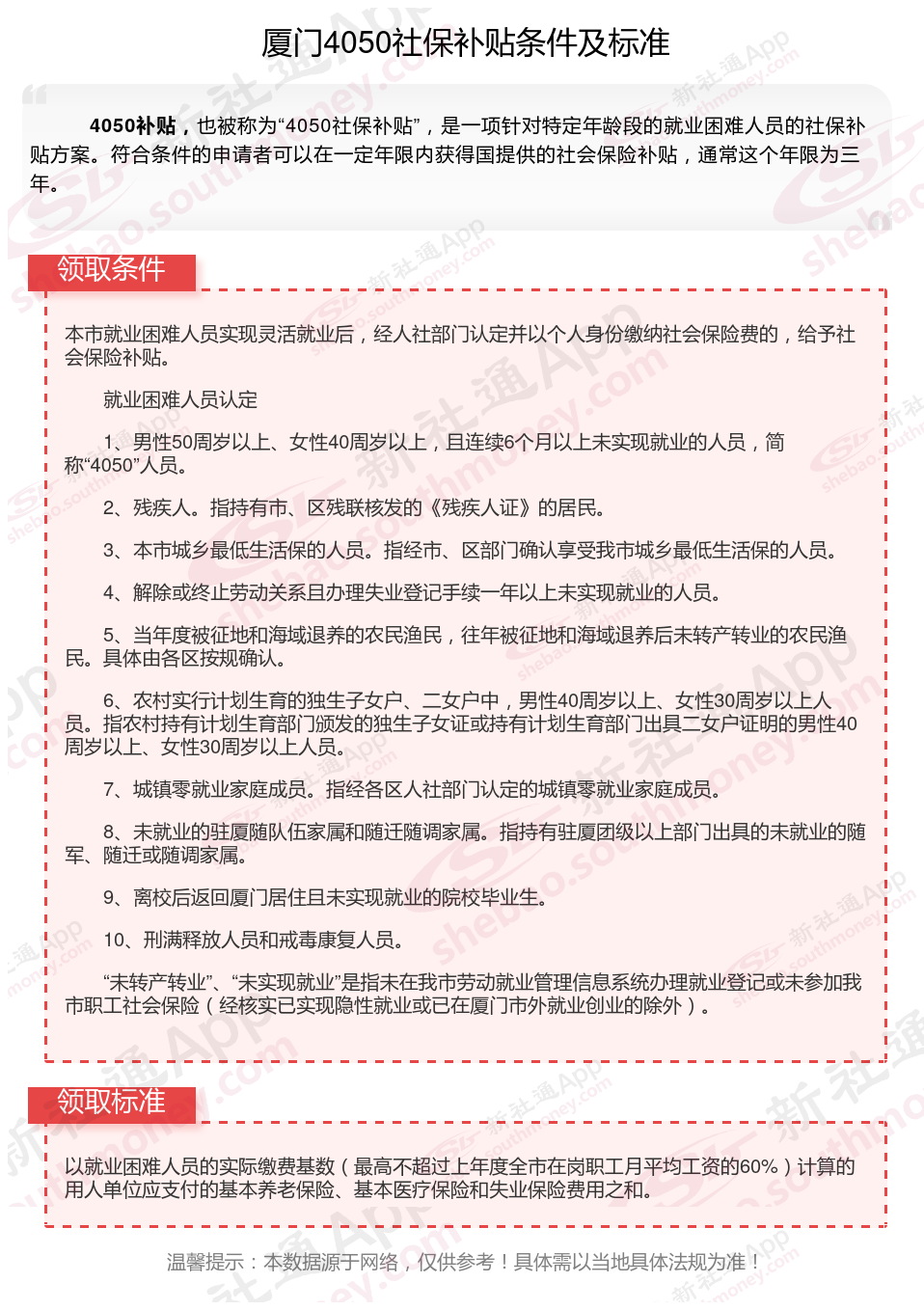 一、2023-2024年厦门4050社保补贴标准及条件是多少?
