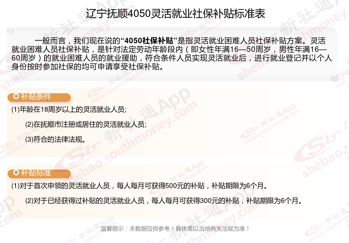 二、辽宁抚顺4050社保补贴标准及条件2025年,最新如下