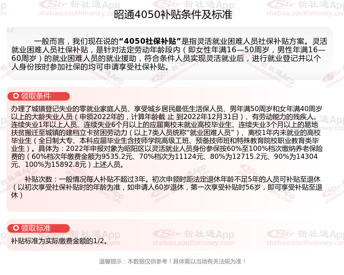 一、2025年昭通4050社保补贴新规2025年昭通4050社保补贴标准是什么,需要什么条件?