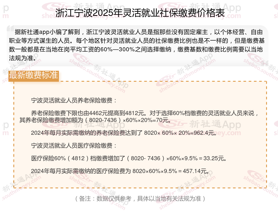 一、2025年浙江宁波灵活就业社保缴费标准表 浙江宁波灵活就业社保多少钱一个月?