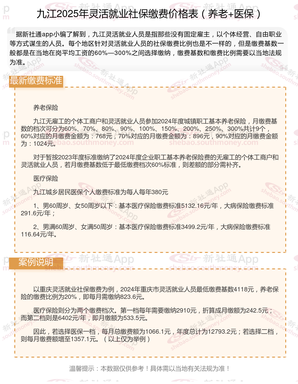 一、2025年九江灵活就业人员社保养老+医保缴费标准一年多少钱?