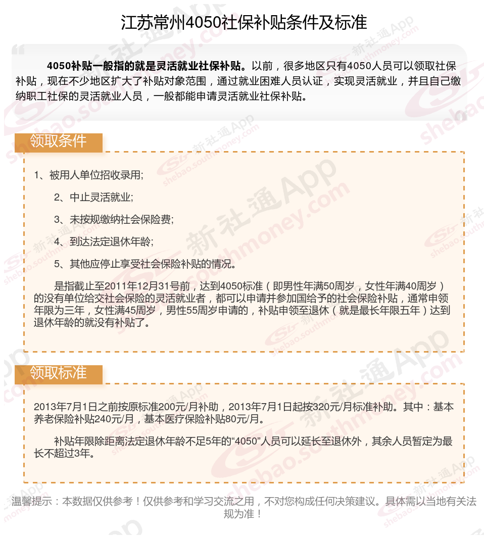 一、2025年江苏常州4050社保补贴标准,最新领取条件来了