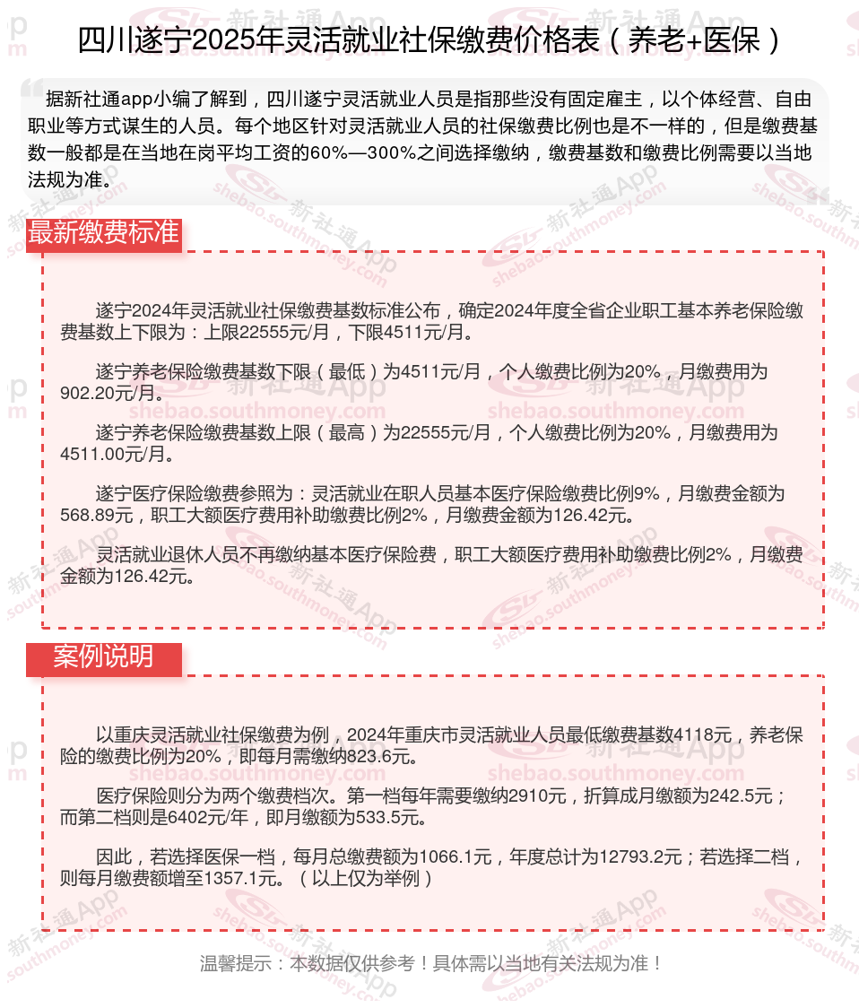 二、四川遂宁2025年灵活就业社保缴费基数及比例最新消息