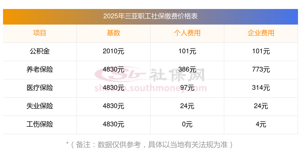 社保每个月要交的钱数因个人情况和所在地区的不同而有所差异。一般来说,如果有单位,单位会承担社保的大部分费用,个人每个月需要缴纳的社保费用大约在200多元。而如果是个人全部缴纳,每个月需要交的费用大约千元左右。接下来随社保君一起了解三亚社保缴费的详情。
