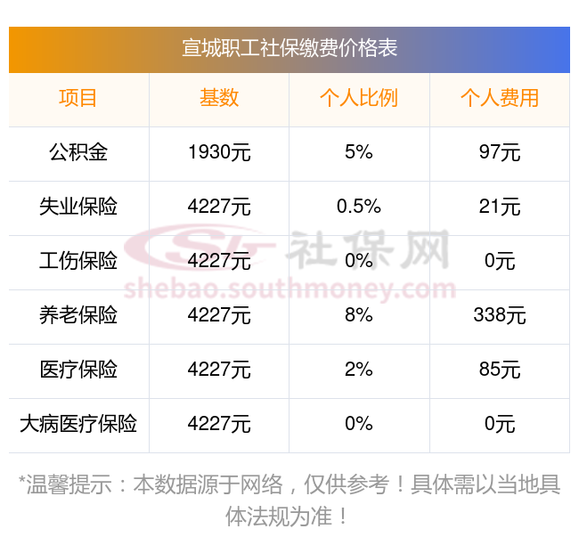 5、工伤保险:单位缴费比例为0.2%-1.9%,个人不用缴纳任何费用。