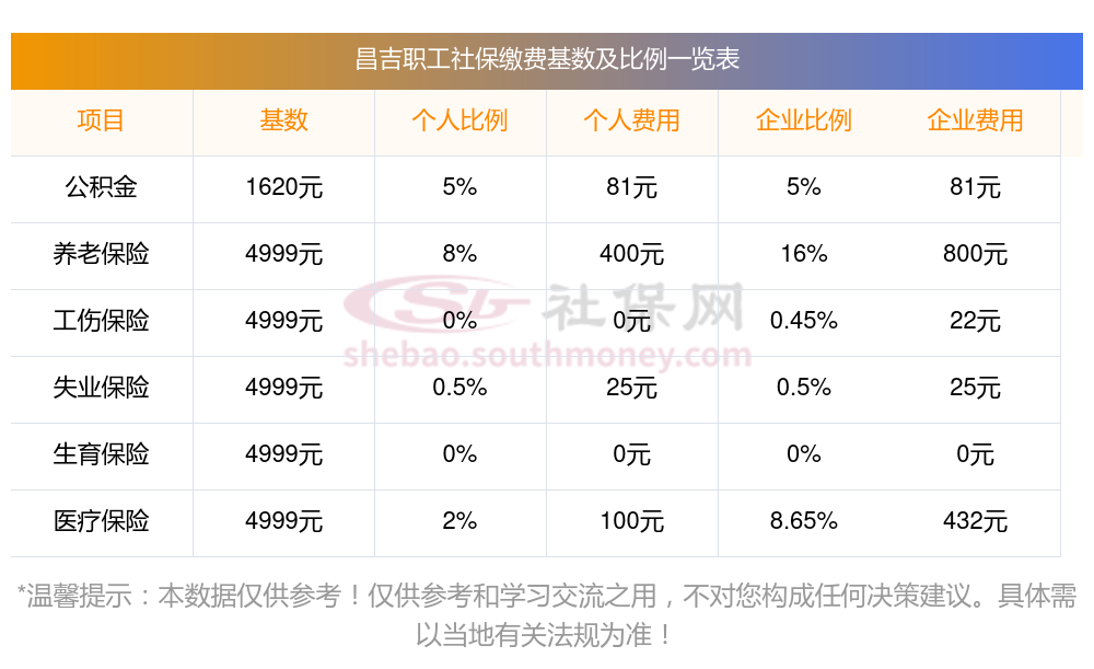 个人可以缴纳社保吗?缴纳社保多少钱一个月?下表是2025年昌吉社保费用明细参考,新社通app-社保缴费查询工具提供的最新数据如下: