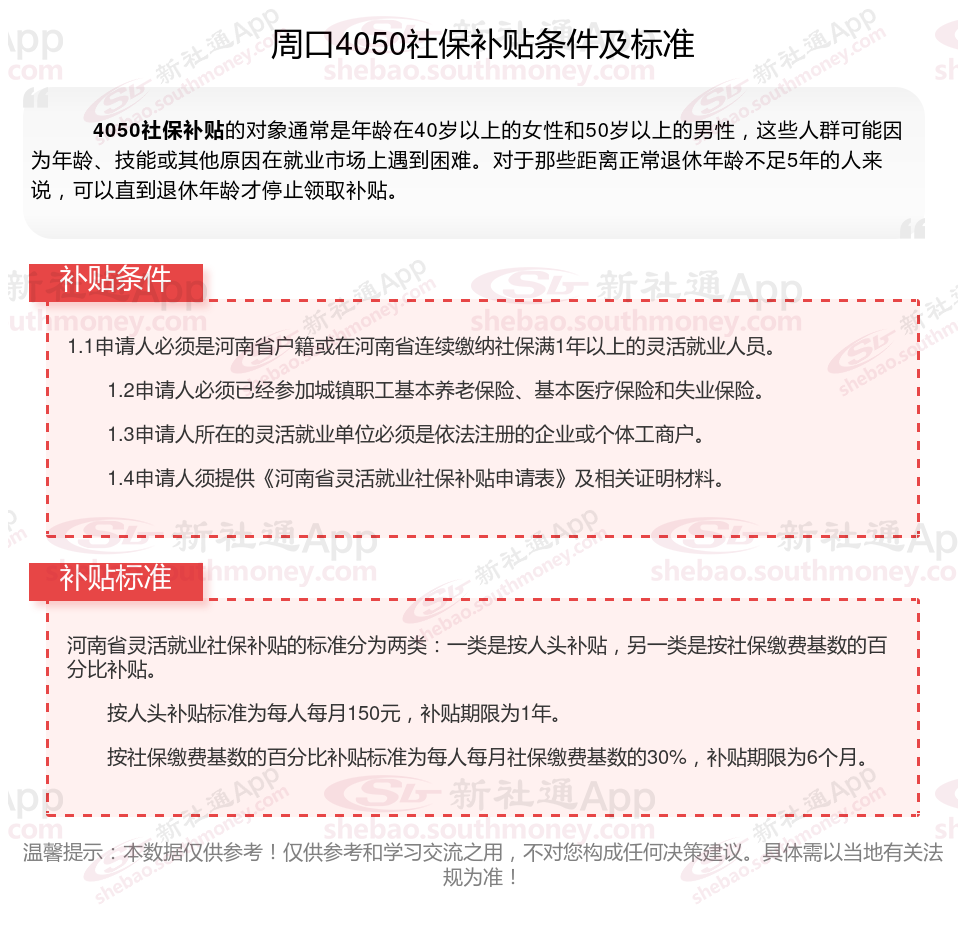 三、周口灵活就业4050社保补贴标准及条件是什么